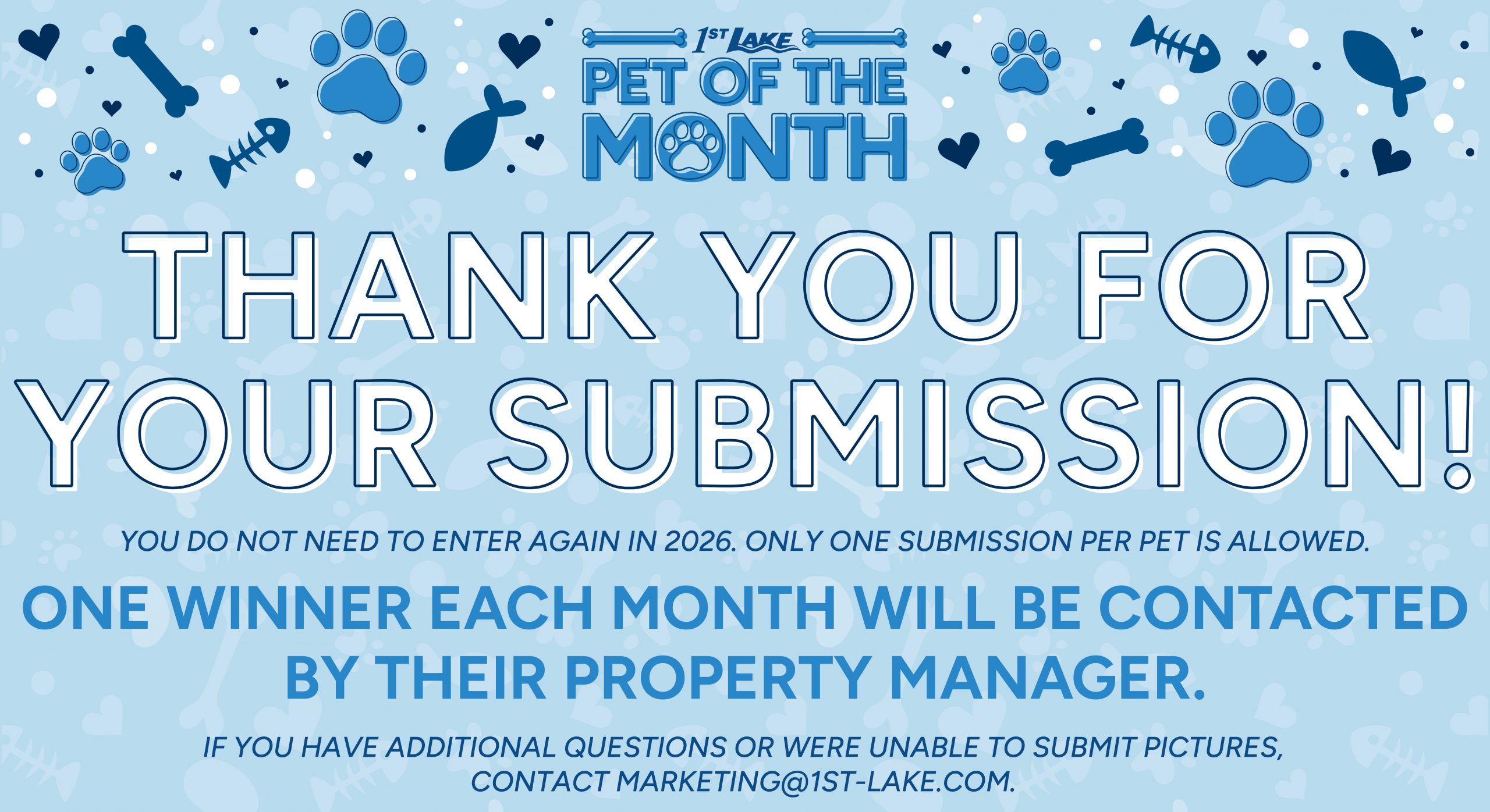 Follow us on social media to see who wins the 1st Lake Properties Pet of the Month contest!
