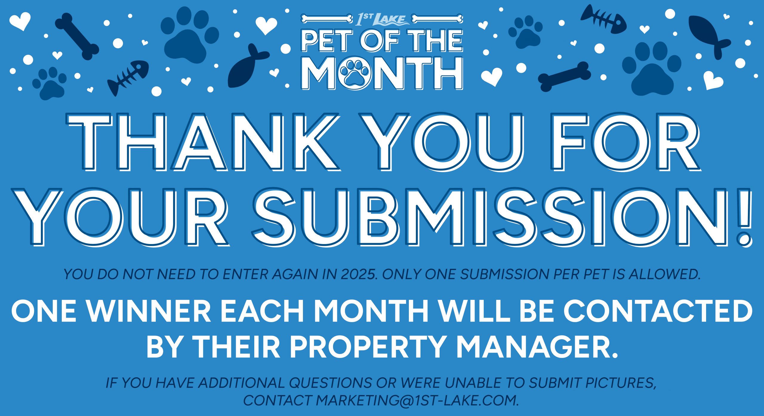Follow us on social media to see who wins The 1st Lake Properties Pet of the Month contest!